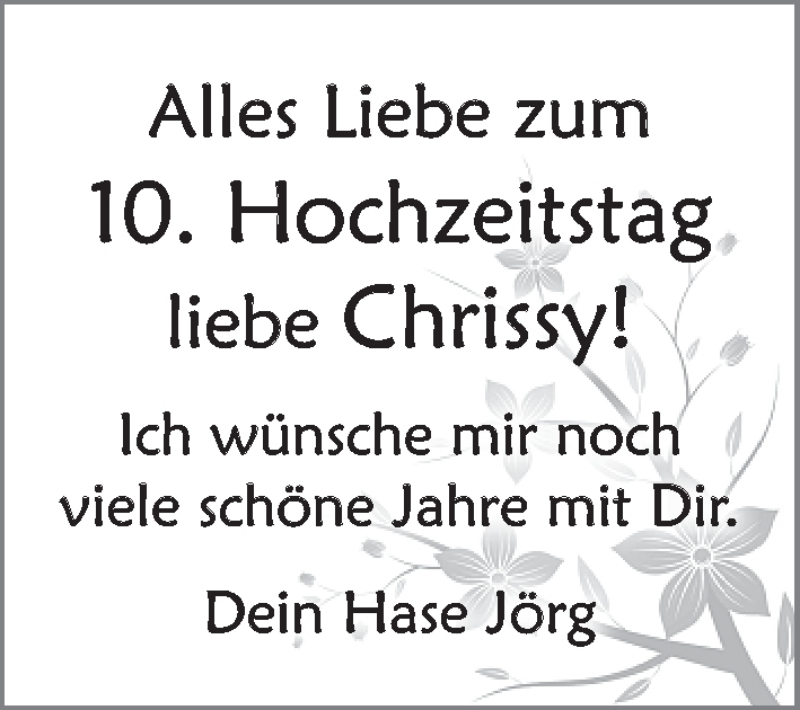 Hier finden Sie alle Familienanzeigen aus der Zeitung, die bisher für Chrissy erschienen sind. Weitere Familienanzeigen, die in der Zeitung erscheinen, werden hier ebenfalls aufgelistet