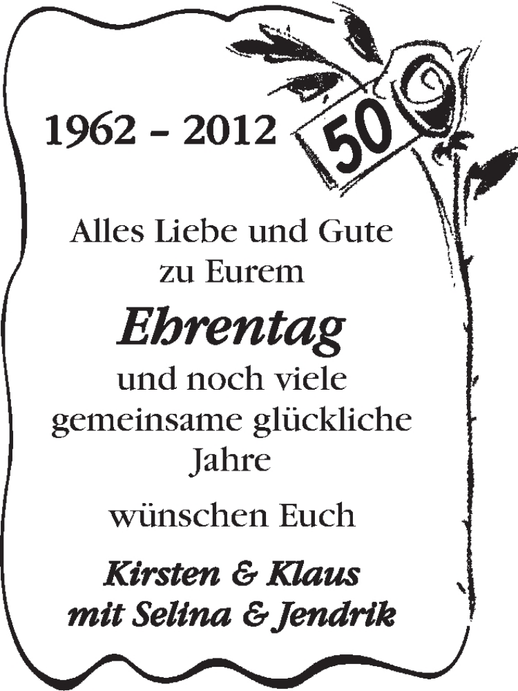 Hier finden Sie alle Familienanzeigen aus der Zeitung, die bisher für Ehrentag erschienen sind. Weitere Familienanzeigen, die in der Zeitung erscheinen, werden hier ebenfalls aufgelistet