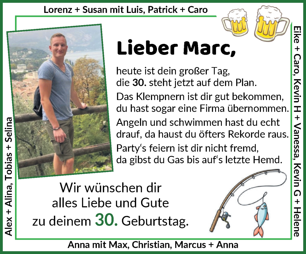 Hier finden Sie alle Familienanzeigen aus der Zeitung, die bisher für Marc erschienen sind. Weitere Familienanzeigen, die in der Zeitung erscheinen, werden hier ebenfalls aufgelistet