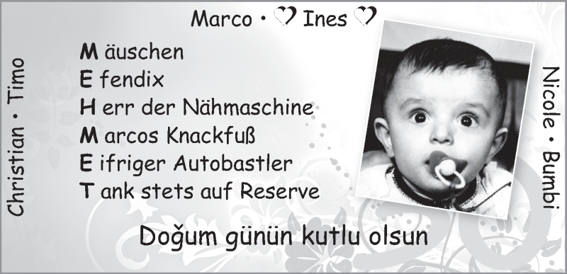Hier finden Sie alle Familienanzeigen aus der Zeitung, die bisher für Mehmet erschienen sind. Weitere Familienanzeigen, die in der Zeitung erscheinen, werden hier ebenfalls aufgelistet