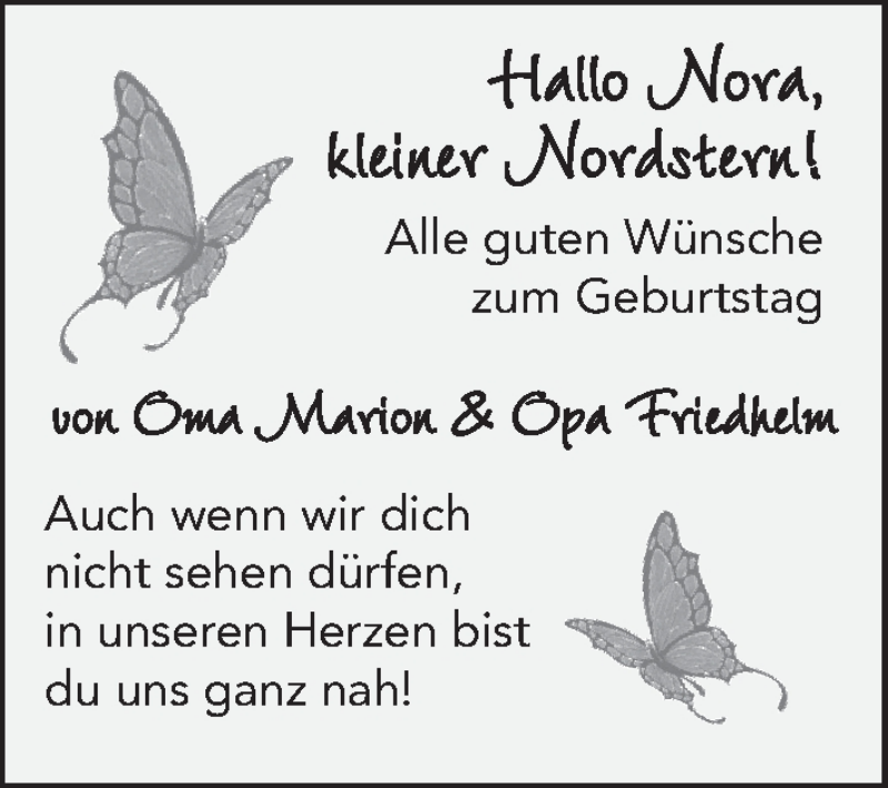 Hier finden Sie alle Familienanzeigen aus der Zeitung, die bisher für Nora erschienen sind. Weitere Familienanzeigen, die in der Zeitung erscheinen, werden hier ebenfalls aufgelistet