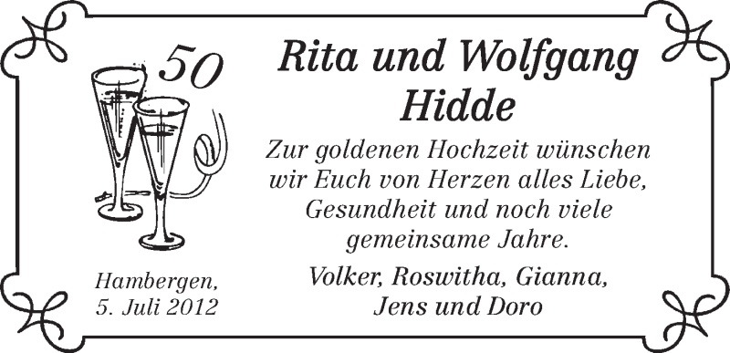 Hier finden Sie alle Familienanzeigen aus der Zeitung, die bisher für Rita und Wolfgang Hidde erschienen sind. Weitere Familienanzeigen, die in der Zeitung erscheinen, werden hier ebenfalls aufgelistet