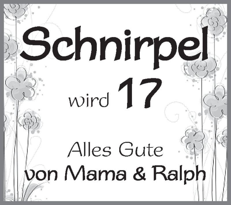 Hier finden Sie alle Familienanzeigen aus der Zeitung, die bisher für Schnirpel erschienen sind. Weitere Familienanzeigen, die in der Zeitung erscheinen, werden hier ebenfalls aufgelistet