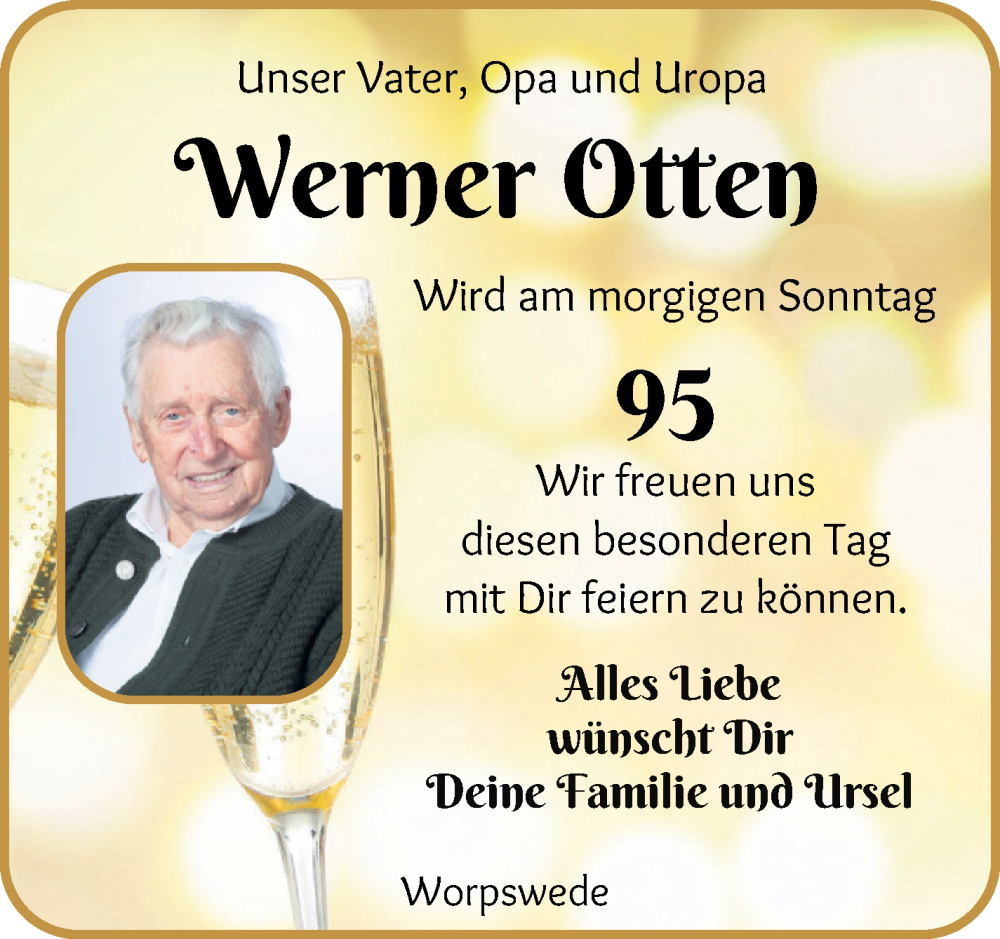 Hier finden Sie alle Familienanzeigen aus der Zeitung, die bisher für Werner Otten erschienen sind. Weitere Familienanzeigen, die in der Zeitung erscheinen, werden hier ebenfalls aufgelistet
