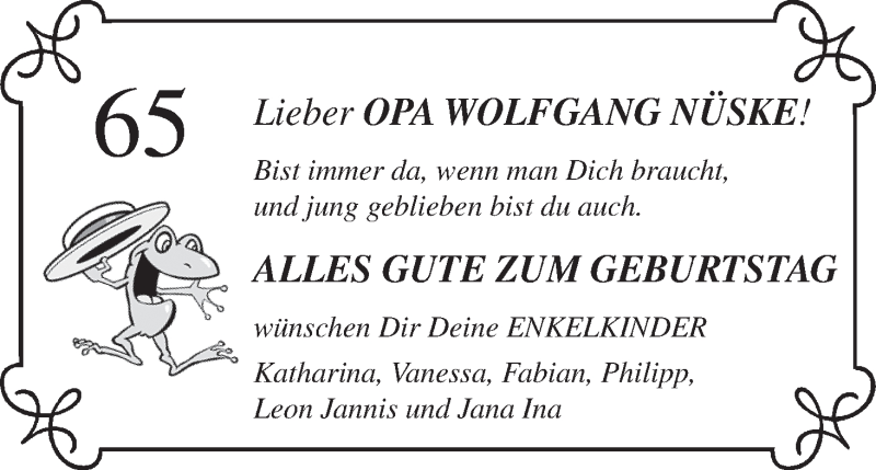 Hier finden Sie alle Familienanzeigen aus der Zeitung, die bisher für Wolfgang Nüske erschienen sind. Weitere Familienanzeigen, die in der Zeitung erscheinen, werden hier ebenfalls aufgelistet
